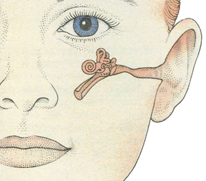 Ухо, состоящее из наружного, среднего и внутреннего отделов, является не только органом слуха, но и определяет положение тела и равновесие. Наружное ухо — это ушная раковина, которая предохраняет слуховой проход от повреждений. Для защиты от инородных частиц в слуховом проходе имеются также волоски и особые железы, выделяющие серу. В среднем ухе находятся три самые маленькие в организме кости: молоточек, наковальня и стремечко, которые связывают барабанную перепонку с внутренним ухом, содержащим улитку — орган слуха. Колебания барабанной перепонки превращаются в нервные импульсы, которые мозг воспринимает как звук.