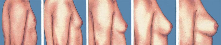 Молочные железы поддерживаются мышцами, связками и жировой тканью. Железы, вырабатывающие молоко, объединены в дольки, которые радиально расходятся от соска. У девочек в возрасте 10—11 лет сосок начинает выпячиваться, а ареола — выбухать. Железистая и жировая ткани быстро разрастаются, и по мере того как молочная железа становится округлой, ареола уплощается.