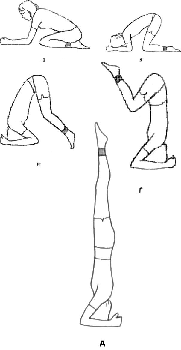 Эта поза (порядок ее выполнения показан на рисунке 14, а—д) улучшает все функции организма, координацию движений, быстроту реакции, а также память и настроение.