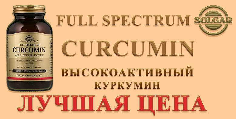 SOLGAR Curcumin 90 капсул с жидким экстрактом. Полный спектр Куркумина