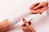 - После этого жгут, вату и манжету оборачивают полимерной пленкой, чтобы они не пропиталось кровью.