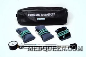 Пневматический кровоостанавливающий жгутС пневматическим кровоостанавливающим жгутом нужно обращаться так же осторожно, как и с любым другим хирургическим инструментом: сотрясения, удары и толчки могут вывести из строя анероидный датчик давления. Перед применением жгута необходимо проверить все его части на герметичность и на отсутствие неплотных соединений. Регулярные калибровки анероидного датчика можно производить путем подсоединения его к ртутному манометру обычного сфигмоманометра.
